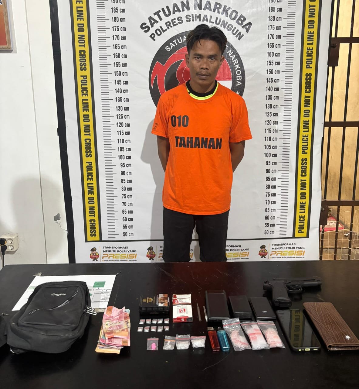 Simalungun | DelikSumut – Polres Simalungun berhasil mengungkap kasus peredaran narkoba di wilayah hukumnya dengan menangkap seorang tersangka berinisial EAAP beserta sejumlah barang bukti narkotika jenis sabu-sabu dan pil ekstasi. Penangkapan dilakukan pada Jumat, 16 Mei 2025, di sebuah rumah kosong milik Bapak Abdullah Malik Damanik di Huta VI Negeri Bayu, Nagori Negeri Bayu Muslimin, Kecamatan Tapian Dolok, Kabupaten Simalungun.