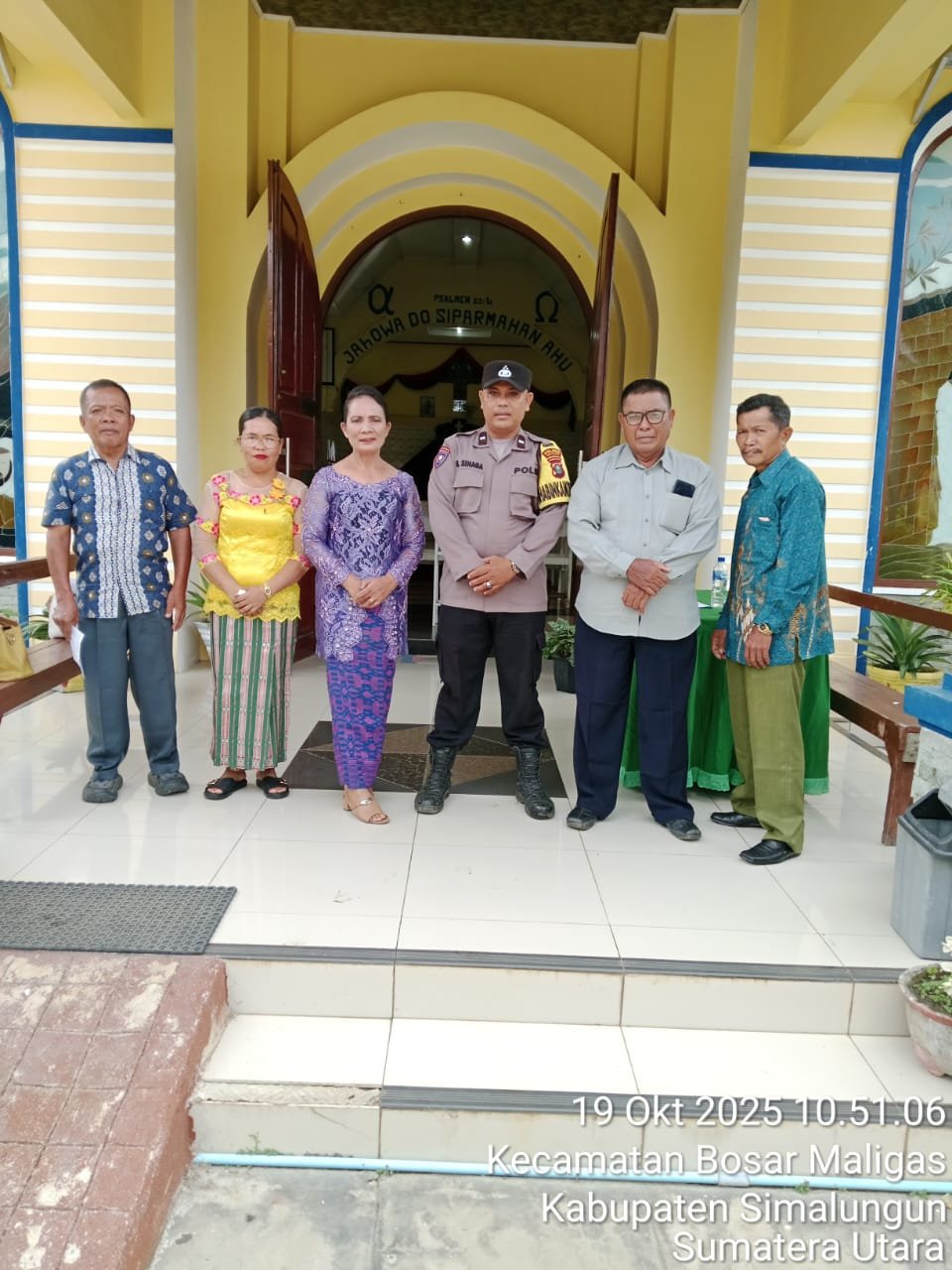 Bhabinkamtibmas Polsek Bosar Maligas, Aipda H. Sinaga, melaksanakan kegiatan sambang ibadah Minggu dan monitoring serta pengamanan di tempat ibadah atau gereja guna menciptakan rasa aman dan nyaman bagi jemaat. Ibadah Minggu di Gereja HKBP Pasar Baru dipimpin oleh C.Pdt D. Tindaon, S.Si., yang menyampaikan khotbah kepada jemaat yang hadir.