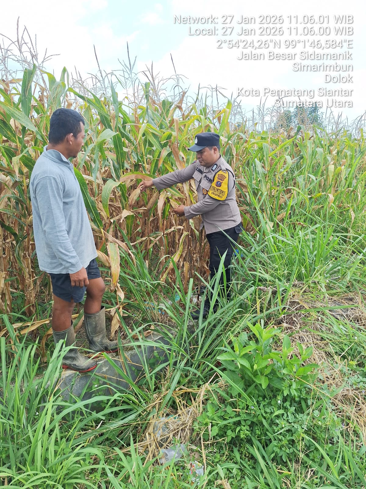 Lahan jagung dimilik Bapak Bastian Silitonga seluas ± 6 rante (2400m²) siap panen yang rencananya hari Kamis 29 Januari 2026. Begitupun Bapak Bastian Silitonga bersedia mengundur panen jagungnya pada tanggal 02 sampai dengan 05 Februari 2026 sehingga bisa dilakukan panen bersama sebagaimana permintaan Bhabinkamtibmas.