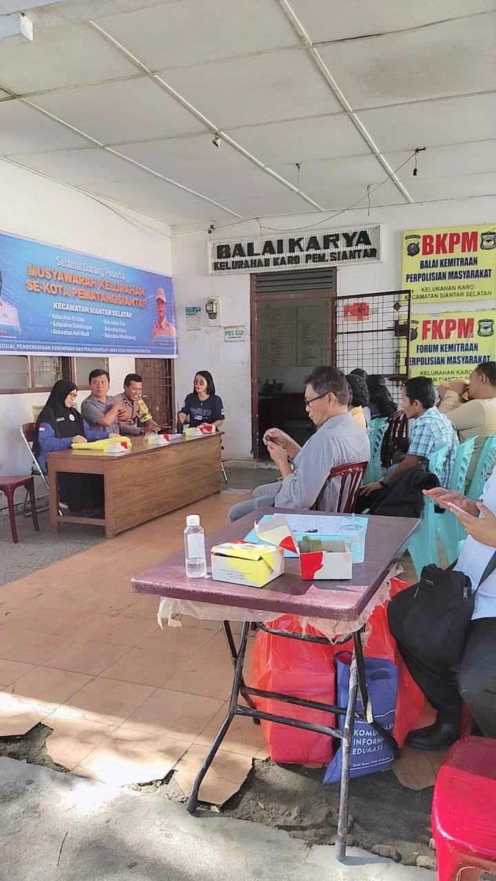 Pematangsiantar | DelikSumut – Polsek Siantar Selatan Polres Pematangsiantar melalui Bhabinkamtibmas Kelurahan Karo Aipda Ronald Sianipar, melaksanakan hadiri kegiatan musyawarah Kelurahan Karo yang digelar di Kantor Kelurahan Karo, Jln.Pane, Kelurahan Karo, Kecamatan Siantar Selatan, Kota Pematangsiantar, Jumat (23/05/2025) pagi dimulai pukul 08.00 Wib.