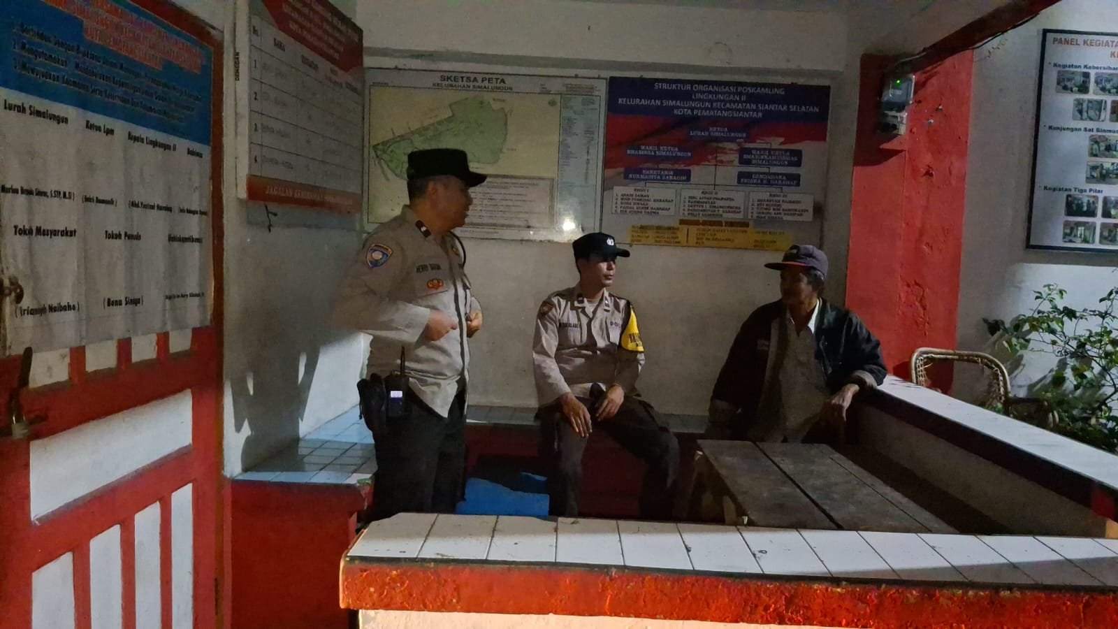 Pematangsiantar | DelikSumut – Polsek Siantar Selatan Polres Pematangsiantar melalui Piket Bhabinkamtibmas AIPDA Herry S. Tarigna dan AIPDA Eko Silalahi menggelar SALING (Sapa Siskamling) di Pos Kamling Merah Putih Jalan Sabang Merauke, Kelurahan Simalungun, Kecamatan Siantar Selatan, Kota Pematangsiantar, Sabtu (26/10/2025) pukul 00.00 Wib.