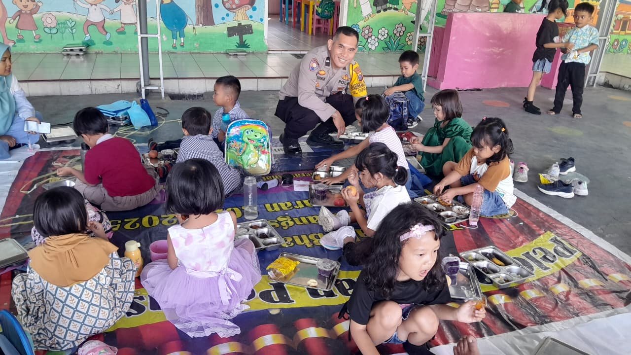Kapolsek Siantar Timur IPTU Edy J.J. Manalu SH. MH menyampaikan bahwa Makanan Bergizi Gratis (MBG) didistribusikan Satuan Pelayanan Pemeliharaan Gizi (SPPG) sebanyak 61 Paket yang diterima Kepala sekolah TK Kemala Bhayangkari Pematangsiantar Ibu Nur Aini S.Pd untuk didistribusikan kepada para anak TK sebagai penerima manfaat.