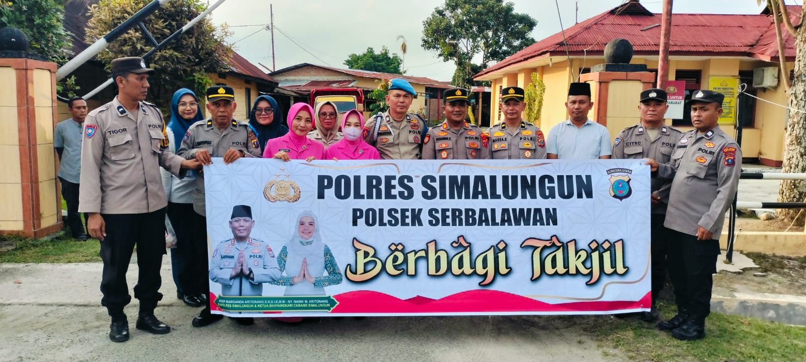 Simalungun | DelikSumut – Dalam rangka meningkatkan kepedulian dan kebersamaan di bulan suci Ramadhan 1447.H, yang penuh berkah, Polsek Serbelawan melaksanakan berbagi takjil kepada masyarakat pengguna jalan di jalan perintis kemerdekaan, kelurahan Serbelawan kecamatan Dolok Batu Nanggar kabupaten Simalungun, Senin (3/3/2026) sore, sekira pukul 16.30 Wib.