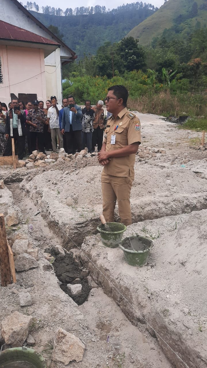 Bupati Humbahas diwakili Staf Ahli Bidang Kemasyarakatan, Perekonomian dan Pembangunan Parman Lumban Gaol letakkan batu pertama pembangunan gedung rumah dinas HKBP Tipang Resort Bakara Distrik III Humbang, Selasa 10 Maret 2026.