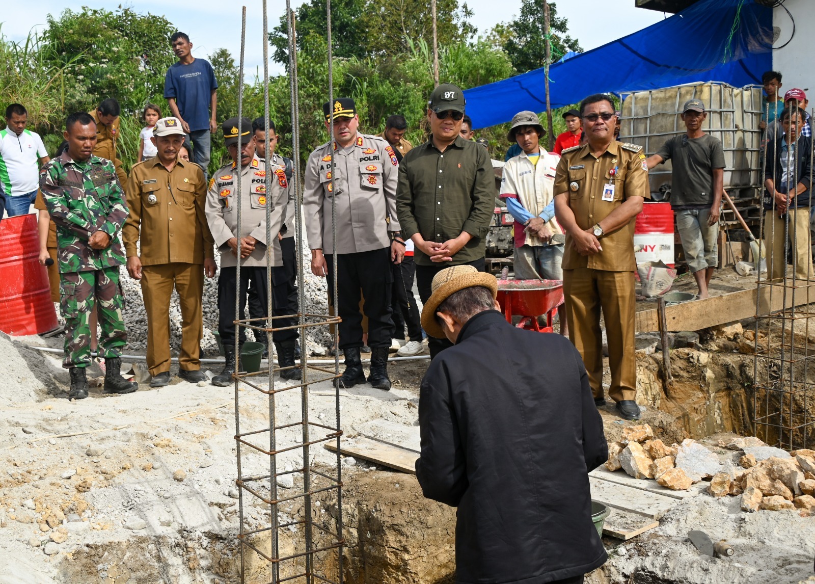Bupati Humbang Hasundutan (Humbahas) Dr Oloan Paniaran Nababan SH MH bersama Kapolres Humbahas AKBP Adi Nugroho SH SIK, Anggota DPRD Humbahas Lam Marganda Silaban dan lainnya melakukan peletakan batu pertama pembangunan KDMP Siponjot di Desa Siponjot Kecamatan Lintongnihuta, Selasa 20 Januari 2026.
