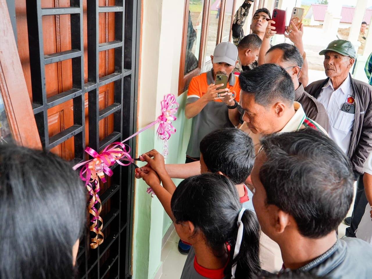 Ditandai pengguntingan pita, Bupati Humbang Hasundutan Dr Oloan Paniaran Nababan SH MH resmikan Unit Sekolah Baru (USB) UPT SMP Negeri 043 Siborboron di Kecamatan Sijamapolang, Jumat (9/1/2026).