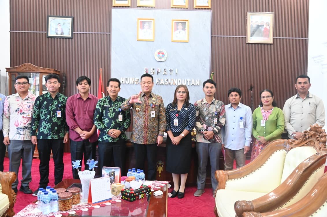 Bupati Humbang Hasundutan Dr Oloan Paniaran Nababan SH MH didampingi Plt Kadis Pendidikan Martahan Panjaitan menerima audensi Panitia Pentas Seni Siswa UPT SMP Negeri 001 Pasar Doloksanggul, Jumat 31 Oktober 2025 di Kantor Bupati Humbang Hasundutan Bukit Inspirasi Doloksanggul.