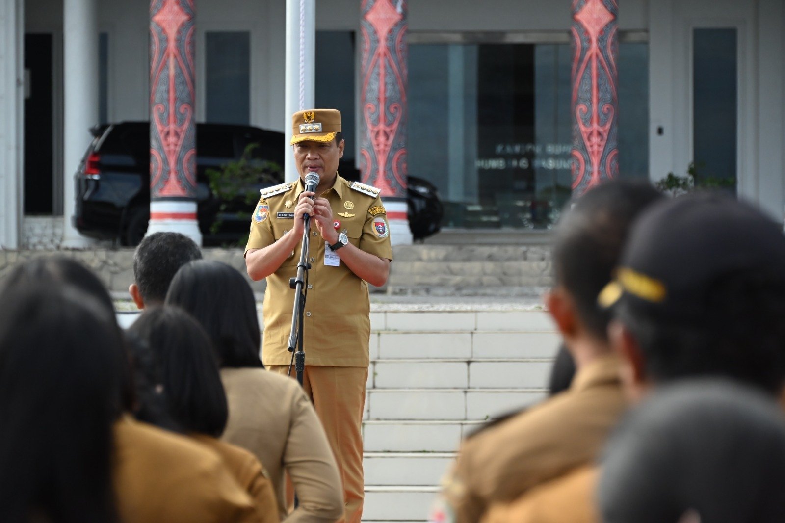 Penegasan ini disampaikan Bupati Humbang Hasundutan Dr Oloan Paniaran Nababan SH MH dalam apel pagi di lapangan upacara Kantor Bupati Humbang Hasundutan Bukit Inspirasi Doloksanggul, Senin 3 November 2025 yang diikuti Sekda Chiristison Rudianto Marbun, para pimpinan OPD (Organisasi Perangkat Daerah), Camat termasuk ASN.