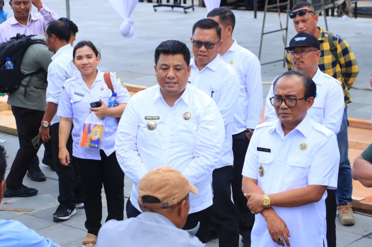 Deliksumut.com | Samosir,-Bupati Samosir Vandiko T. Gultom bersama Wakil Bupati Ariston Tua Sidauruk meninjau persiapan venue utama Trail of The King (TOTK) di Segmen 5 Waterfront City Pangururan, 15/10.