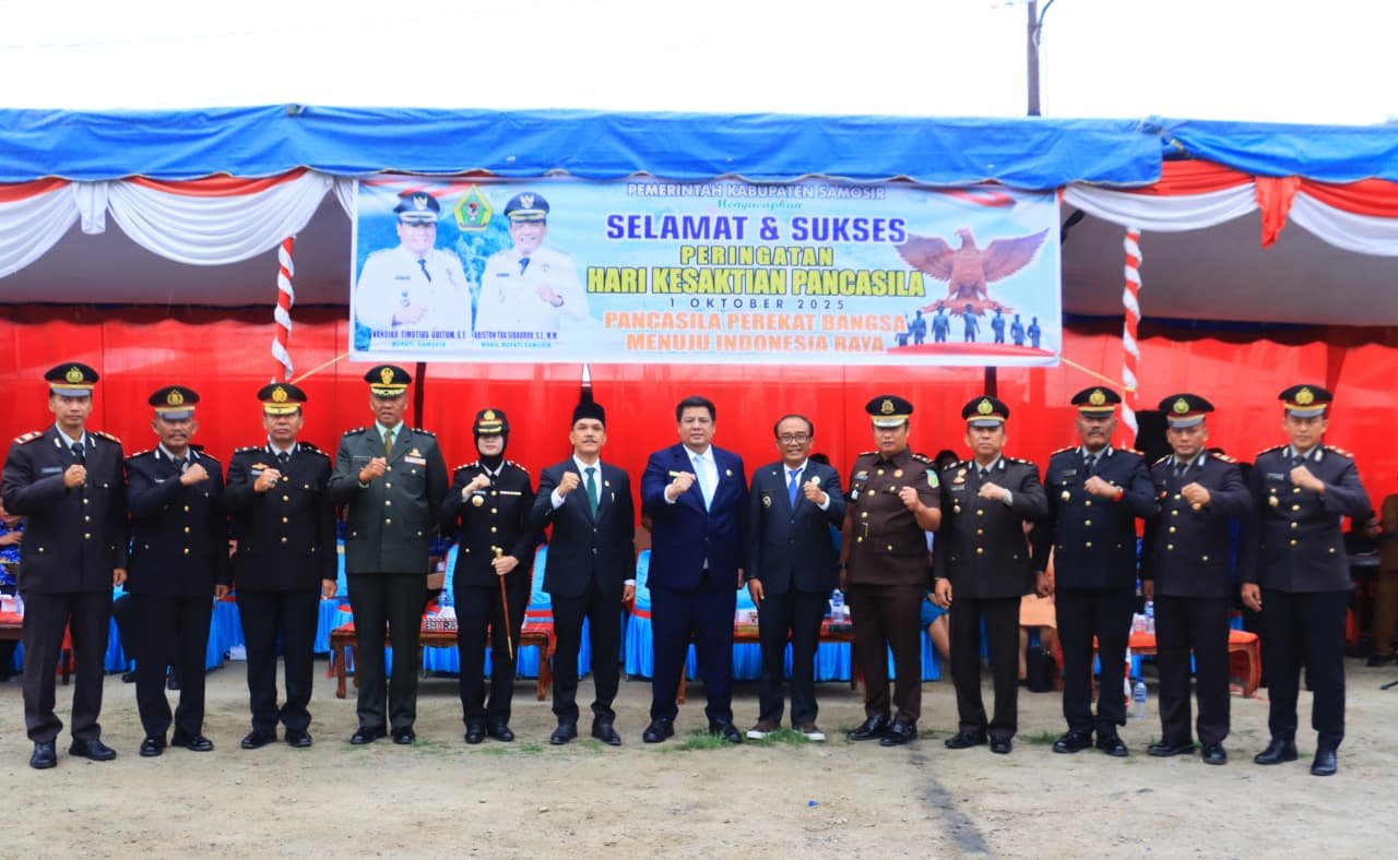 deliksumut.com | Samosir,- Pemerintah Kabupaten Samosir melaksanakan upacara peringatan hari kesaktian Pancasila 2025. Bupati Samosir Vandiko T. Gultom bertindak sebagai inspektur upacara yang digelar di Tanah Lapang Pangururan, 01/10.