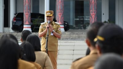 SIMALUNGUN | DelikSumut – Bupati Simalungun Radiapoh Hasiholan Sinaga mengukuhkan Pasukan Pengibar Bendera Pusaka (Paskibraka) Kabupaten Simalungun, di Harungguan Djabanten Damanik Pematang Raya, Kabupaten Simalungun, Sumut, Selasa (15/8/2023).