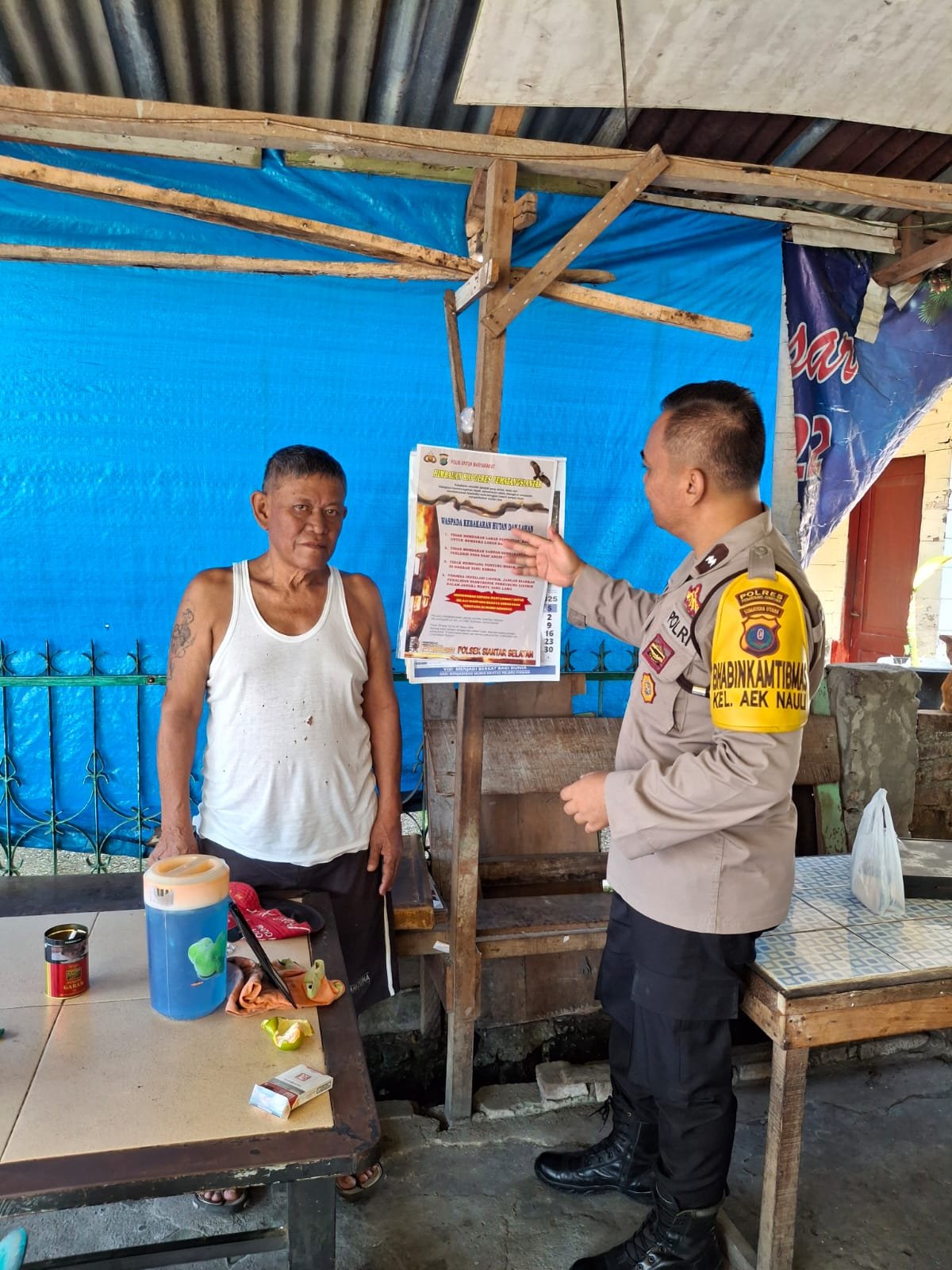 Kapolsek Siantar Selatan IPTU Priston Simbolon dalam laporan menyampaikan penempelen himbauan tersebut bertujuan agar diketahui masyarakat sebagai langkah antisipasi musim kemarau dan angin kencang yang berpotensi meningkatkan resiko terjadi kebakaran