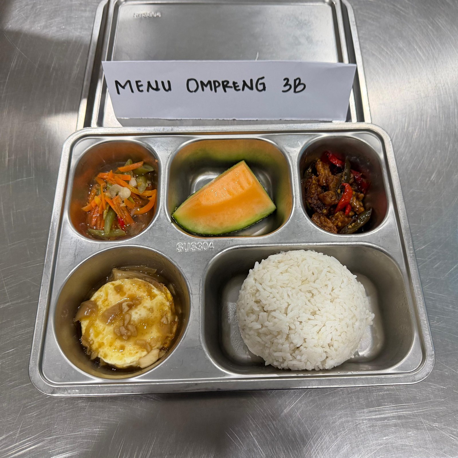Kemudian dilakukan edukasi langkah langkah cara mencuci ompreng yang baik dan benar benar bersih, edukasi pengisian ompreng agar menjaga kebersihan saat pengisian ompreng dan jenis makanan di sesuaikan dgn takaran dari ahli gizi. (PN)