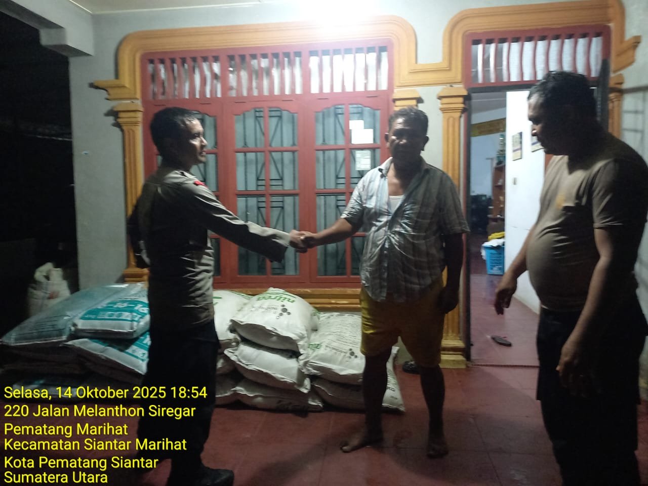 Pematangsiantar | DelikSumut – Kapolsek Siantar Marihat AKP Doni Simanjuntak SH diwakili Kanit Intelkam IPDA Edison Sitohang bersama Bhabinkamtibmas mendistribusikan bantuan pupuk kepada masyarakat, Bapak Kompol Purn. P. Hutasoit di Jalan Melanthon Siregar Gang Kuku Balam, kelurahan Pematang Marihat, Kecamatan Siantar Marimbun Kota Pematangsiantar, Selasa (14/10/2025) sore sekira pukul 16.00 Wib.