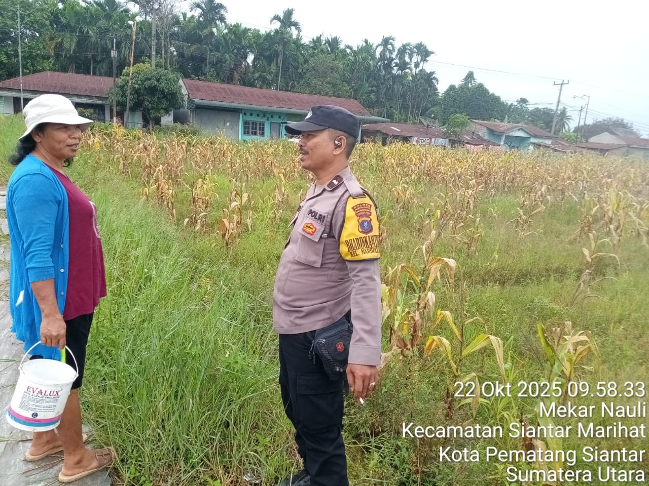 Pematangsiantar | DelikSumut – Dalam rangka mendukung Program Ketahanan Pangan (Ketapang), Polsek Siantar Marihat melalui Bhabinkamtibmas Kelurahan Marihat Jaya Aipda Erick F. Marbun menggelar partroli dan menitong lahan jagung milik warga Bapak Manalu boru Pardede di musi hujan yang terletak di Jalan Farel Pasaribu, Kelurahan Pardamean, Kecamatan Siantar Marihat, Kota Pematangsiantar, Rabu (22/10/2025) pagi pukul 09.30 Wib.