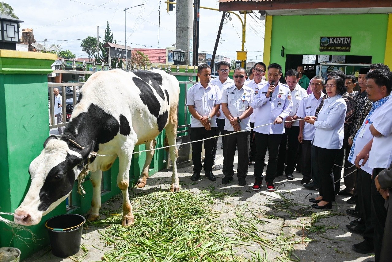 Bupati Humbahas Dr Oloan P Nababan SH MH menerima bantuan 1 (satu) ekor sapi kurban dari Gubsu (Gubernur Sumatera Utara) Bobby Nasution di Mesjid Raya Doloksanggul, Rabu (4/6).
