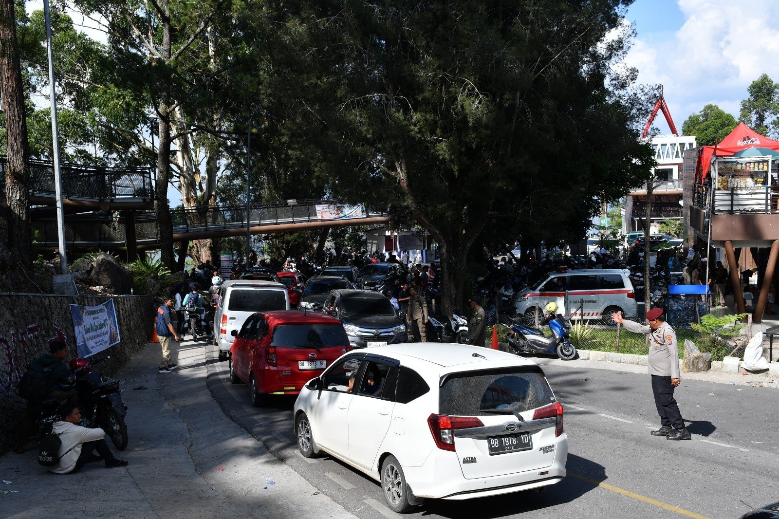 Petugas parkir dari Dinas Perhubungan Kabupaten Samosir, Bascoro Simbolon, menyebut kondisi parkir sudah over kapasitas sejak awal libur.