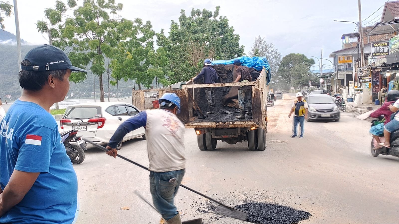deliksumut.com | Samosir,- Dalam upaya perbaikan infrastruktur Guna meningkatkan kenyamanan dan keselamatan pengguna jalan, Dinas Pekerjaan Umum dan Perumahan Rakyat (PUPR) Kabupaten Samosir, melakukan pemeliharaan jalan dengan penambalan aspal diruas jalan di kecamatan pangururan kabupaten Samosir.