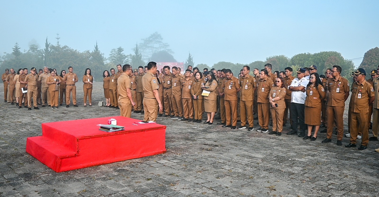 Kali pertama, Bupati Humbang Hasundutan Dr Oloan Paniaran Nababan SH MH didampingi Sekda Chiristison Rudianto Marbun menggelar kegiatan “Ngariung” bersama jajaran pejabat Eselon II dan III di Lingkungan Pemerintah Kabupaten Humbang Hasundutan. Ngariung itu dirangkai dengan apel pagi di Lapangan Upacara Kantor Bupati Humbang Hasundutan Bukit Inspirasi Doloksanggul, Senin 26 Januari 2026.