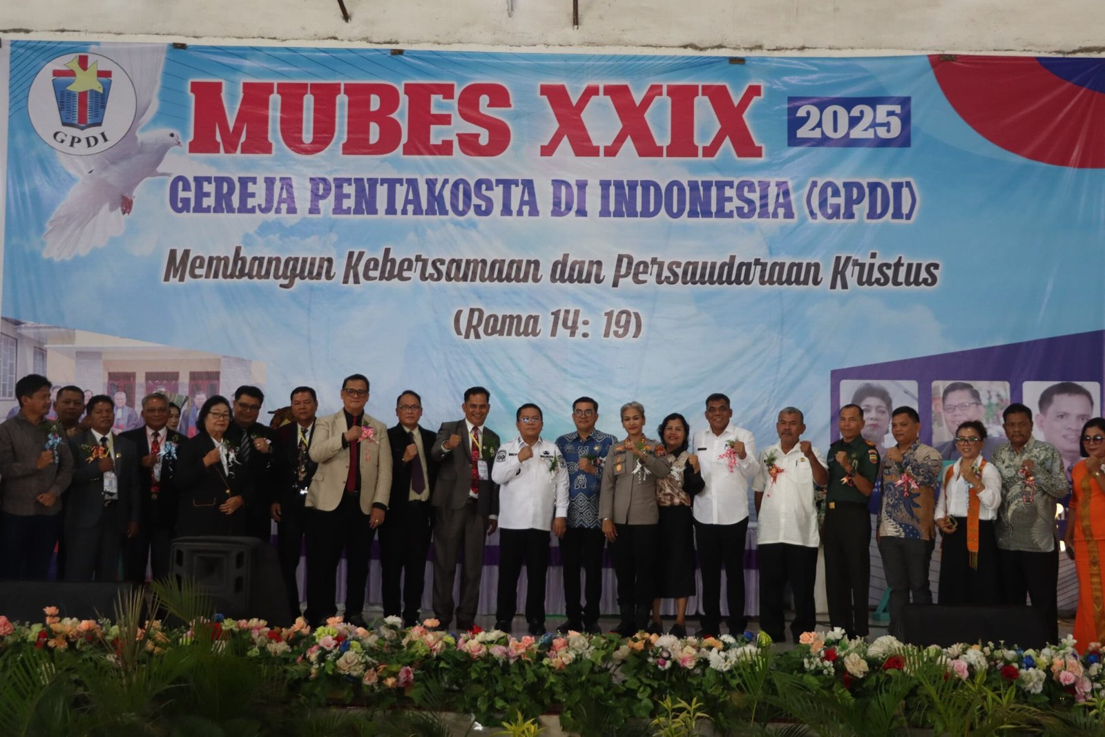 Pematangsiantar | DelikSumut – Kapolres Pematangsiantar AKBP Sah Udur T.M. Sitinjak SH.,SIK., MH, menghadiri kegiatan Musyawarah besar (Mubes) ke XXIX Gereja Pentakosta di Indonesia (GPDI) Tahun 2025 bertempat di STT GPDI Jln. Sangnaualuh, Kelurahan Siopat Suhu, Kecamatan Siantar Timur, Kota Pematangsiantar, Rabu (02/07/2025) pukul 10.00 Wib.