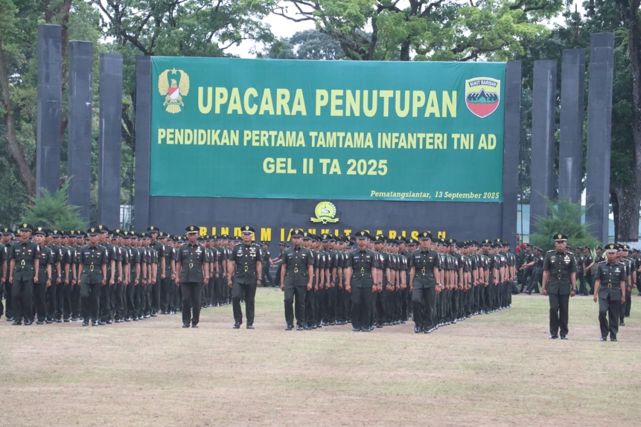 Pematangsiantar | DelikSumut – Kapolres Pematangsiantar AKBP Sah Udur T.M. Sitinjak SH. SIK. MH hadiri Upacara Penutupan Pendidikan Pertama Tamtama (Dikmata) Infanteri TNI Angkatan Darat Gelombang II Tahun 2025 yang berlangsung di Lapangan Rindam I/Bukit Barisan (BB) Jalan Argasari, Setia Negara, Kecamatan Siantar Sitalasari, Kota Pematangsiantar, Sumatera Utara, Sabtu (13/9/2025) sore pukul 15.00 WIB.