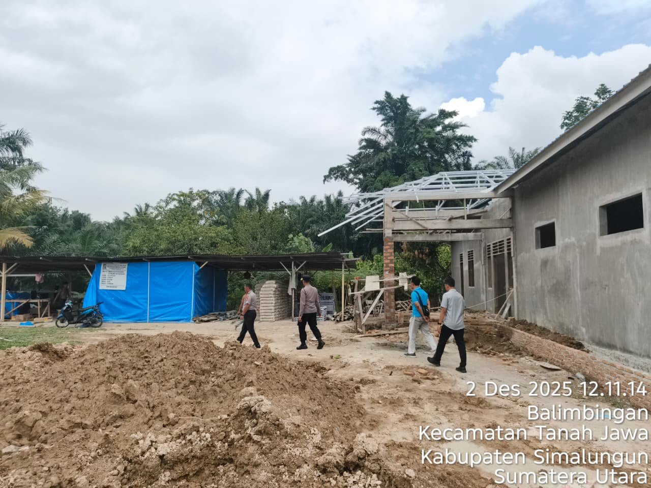 Kapolres Simalungun, AKBP Marganda Aritonang, S.H., S.I.K., M.M., didampingi langsung oleh Kepala Kepolisian Sektor Tanah Jawa, Kompol Asmon Bufitra, S.H., M.H., saat melakukan pengecekan menyeluruh di lokasi pembangunan. Kedua pejabat tinggi ini tampak serius mengamati setiap detail pekerjaan yang sedang dilakukan oleh tim kontraktor.