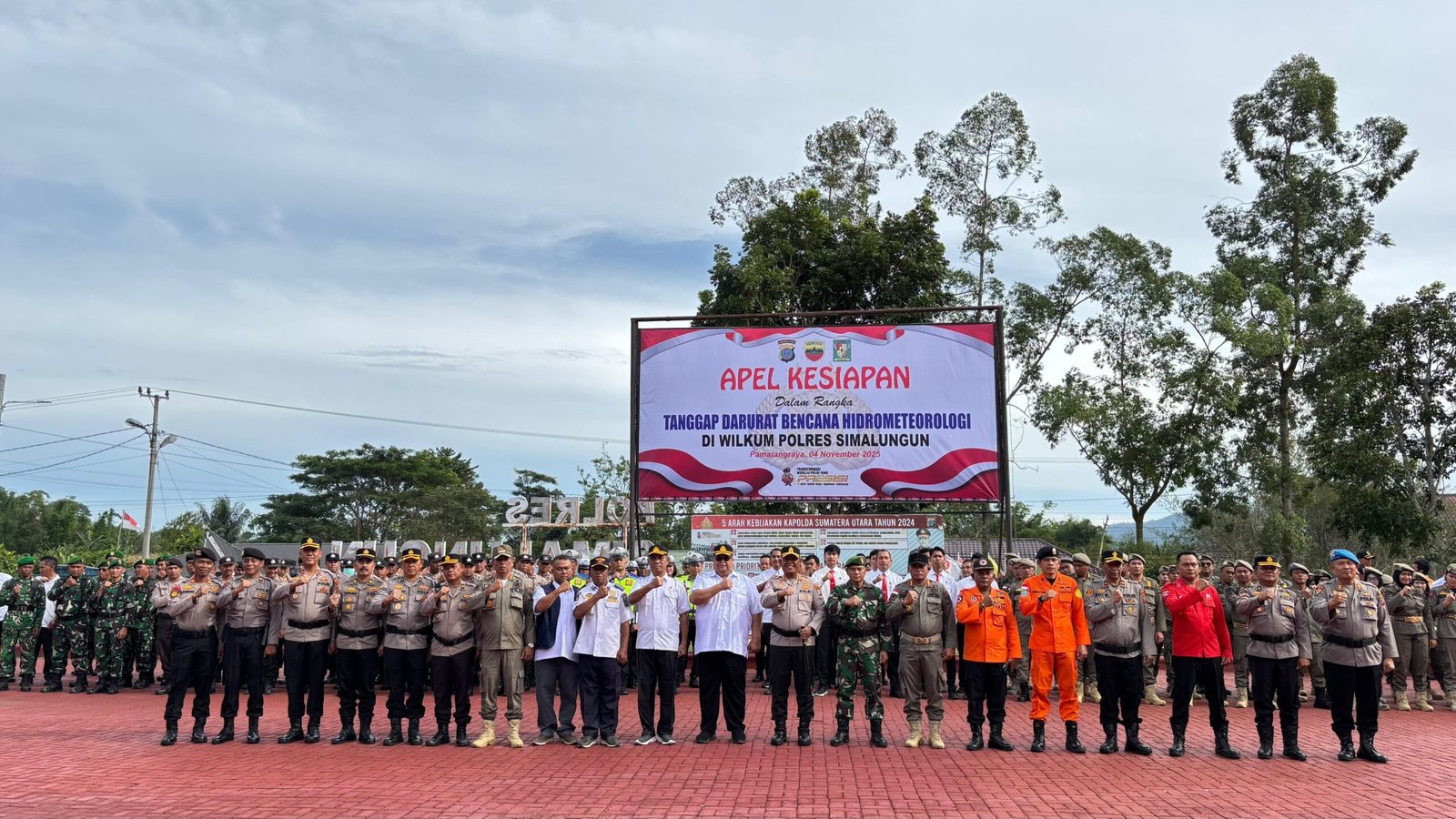 Simalungun | DelikSumut – Dalam rangka meningkatkan kesiapsiagaan menghadapi potensi bencana alam akibat cuaca ekstrem dan bencana hidrometeorologi lainnya, Kapolres Simalungun AKBP Marganda Aritonang, S.H., S.I.K., M.M. memimpin langsung Apel Kesiapan Tanggap Darurat Bencana, yang digelar di Lapangan Apel Mako Polres Simalungun, Jalan Jon Horailam Saragih No. 110, Pematang Raya, Kabupaten Simalungun, pada Rabu (5/11/2025) pukul 08.00 WIB.