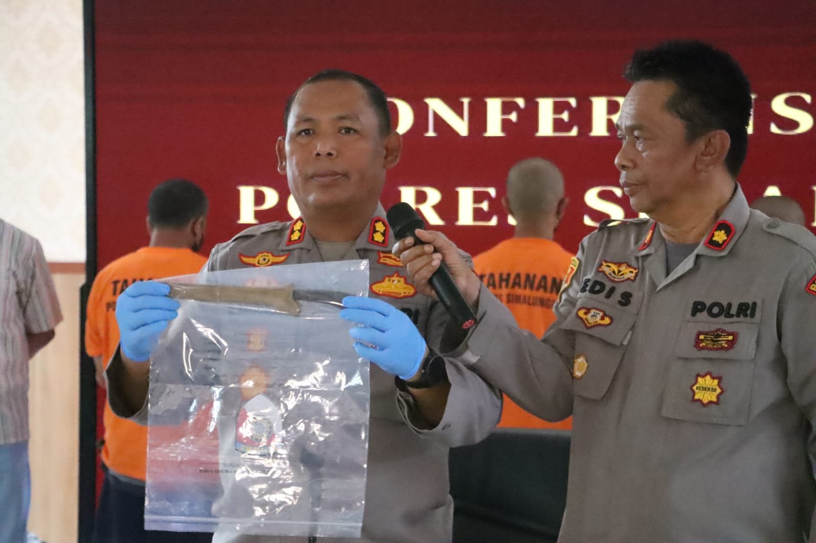Dalam konferensi pers tersebut, Kapolres Simalungun AKBP Marganda Aritonang mengungkapkan kronologi kasus pembunuhan berencana yang terjadi di Kabupaten Simalungun. Korban pembunuhan diidentifikasi sebagai Ruslan Girsang (78 tahun) yang tewas ditusuk oleh adik kandungnya sendiri, Jasaman Girsang (62 tahun).