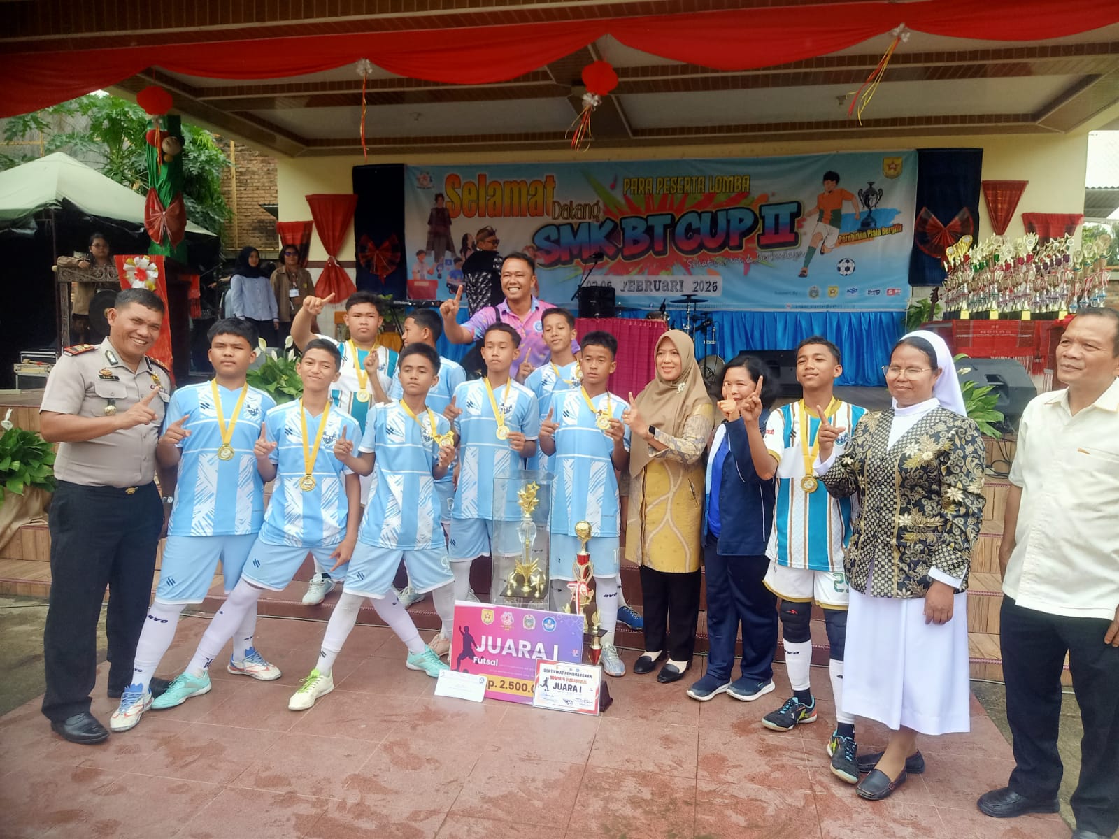 Pematangsiantar | DelikSumut – Kapolsek Siantar Marihat AKP Doni Simanjuntak SH mewakili Kapolres Pematangsiantar AKBP Sah Udur T.M. Sitinjak SH. SIK. MH menghadiri penutupan SMK BT Cup II yang berlangsung di lapangan sekolah SMK Swasta RK Bintang Timur, Jalan Melanton Siregar, Kelurahan Sukaraja, Kecamatan Siantar Marihat, Kota Pematangsiantar, Jumat (6/2/2026) siang, sekitar pukul 13.30 Wib.