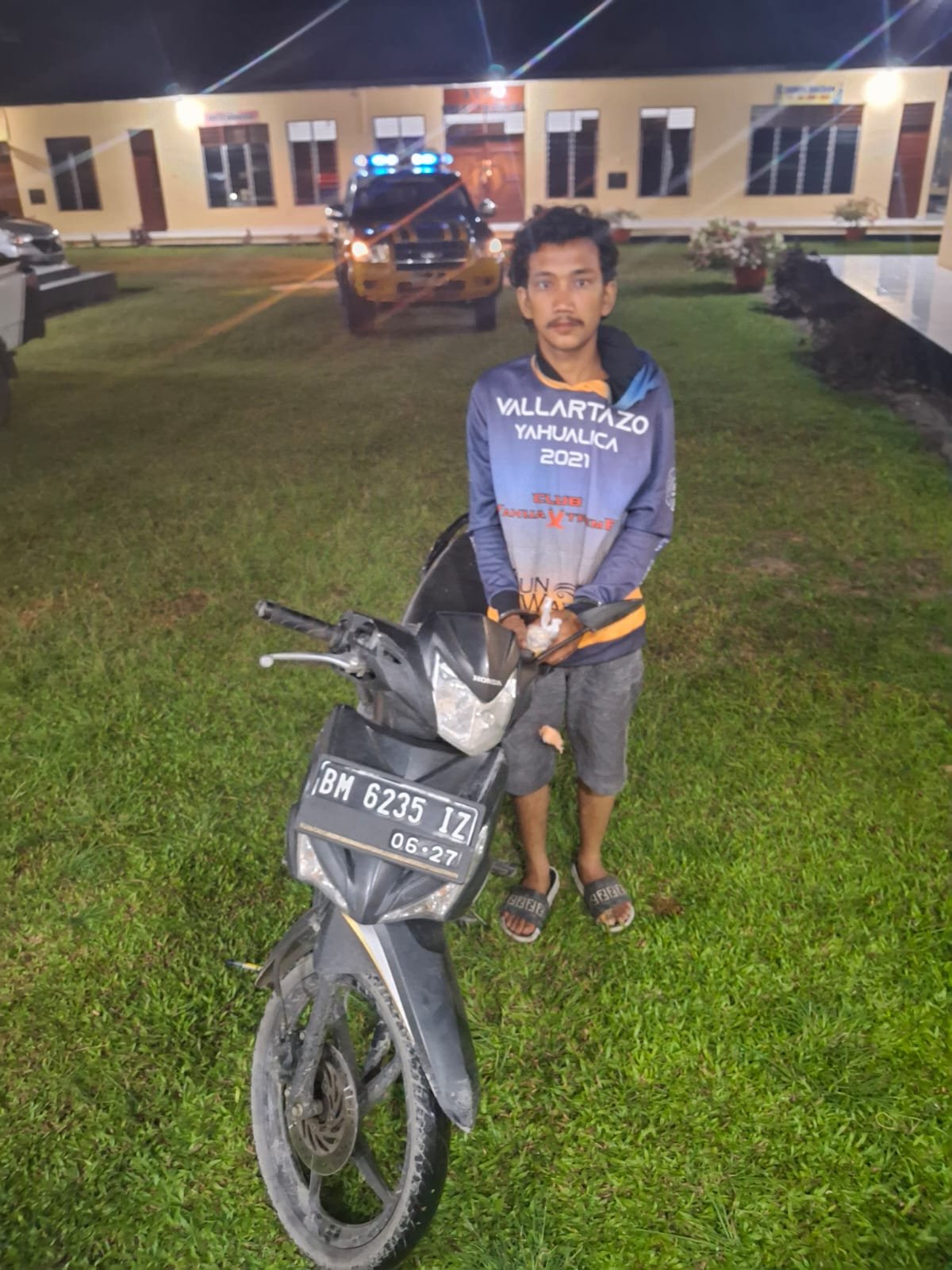 “Kapos Hatonduhan Aiptu YW Naingolan menginformasikan bahwa seorang laki-laki diamankan masyarakat tanpa identitas yang diduga menggelapkan sepeda motor dari daerah Bunut Pekanbaru. Kami langsung bergerak cepat merespons informasi tersebut,” ungkap Panit Reskrim menjelaskan awal mula operasi.
