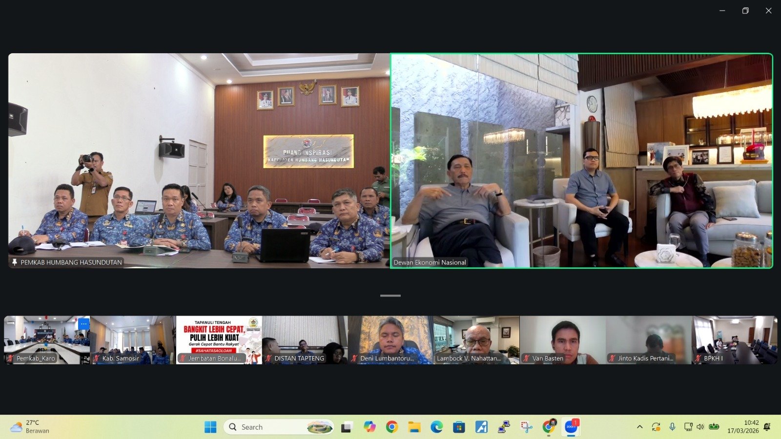 Rencana kunjungan itu, diungkapkan Ketua DEN (Dewan Ekonomi Nasional) Luhut Binsar Pandjaitan dalam rapat zoom dengan Bupati Humbahas Dr Oloan Paniaran Nababan SH MH didampingi Asisten Pemerintahan dan Kesra Sabar H Purba, Kepala Bappelitbangda Pahala Lumban Gaol, Kadis Pertanian dan Ketapang Tukka Siahaan serta Kadis Lingkungan Hidup Jerry Silitonga, Selasa 17 Maret 2026.