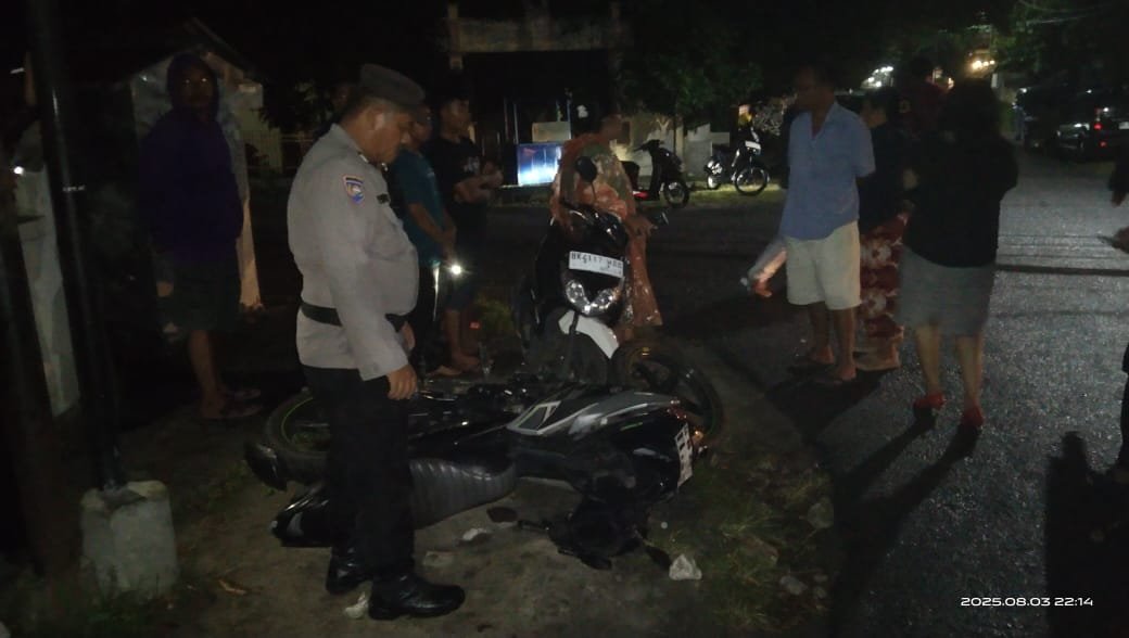 Pematangsiantar | DelikSumut – Polres Pematangsiantar melalui Personil piket Polseķ Siantar Selatan dipimpin PS. Kanit Binmas AIPTU P. Manurung gerak cepat respon laporan masyarakat dengan melakukan pengecekan Kecelakaan Lalulintas (Laka Lantas) di Perempatan Toba- Bahagia, Kelurahan Toba, Kecamatan Siantar Selatan, Kota Pematangsiantar Barat, Kota Pematangsiantar, Minggu (3/8/2025) sekitar pukul 22.00 Wib, Malam.