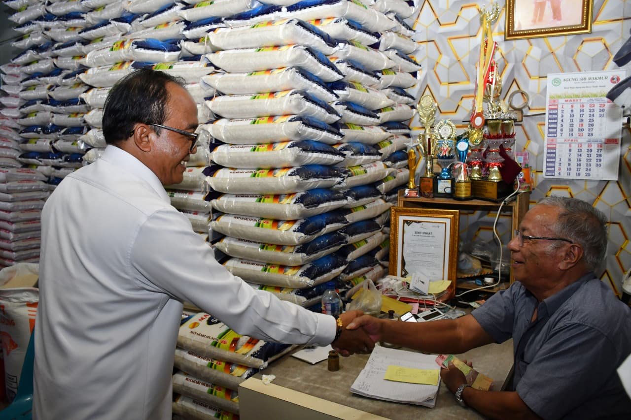 Untuk stok beras, pantauan tim pada sejumlah distributor, yakni UD. Tambun dan CV. Rodearni, ketersediaan stok juga masih aman. Beras Premium harga Rp. 15.600/kg, Beras Medium Rp. 14.500/Kg. Sedangkan harga bawang merah lokal mengalami penurunan harga dari HET Rp. 41.500 dijual dengan harga Rp. 35.000/kg. Cabai merah keriting dengan HET Rp. 55.000 juga mengalami penurunan harga menjadi Rp. 22.000/kg. Sedangkan minyak goreng (minyak kita) stabil pada harga Rp. 15.700/ kg.