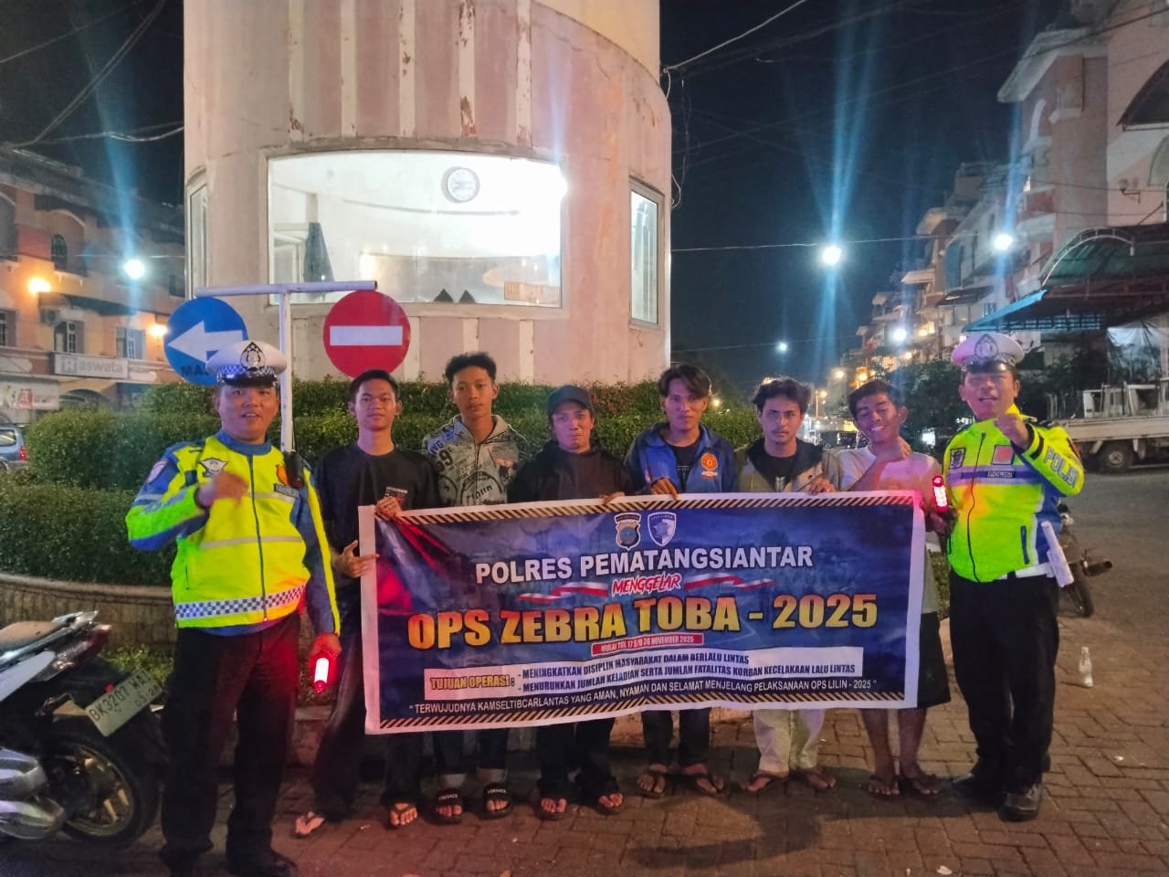 Pematangsiantar | DelikSumut – Dalam rangka Operasi Zebra Toba Tahun 2025, Satuan Lalu lintas (Sat Lantas) Polres Pematangsiantar selaku Satgas Pre Emtip melaksanakan sosialisasi di Pertokoan Megaland Jalan Sangnawaluh, Kelurahan Siopat Suhu, Kecamatan Siantar Timur, Kota Pematangsiantar, Sabtu (22/11/2025) malam pukul 20.00 Wib.