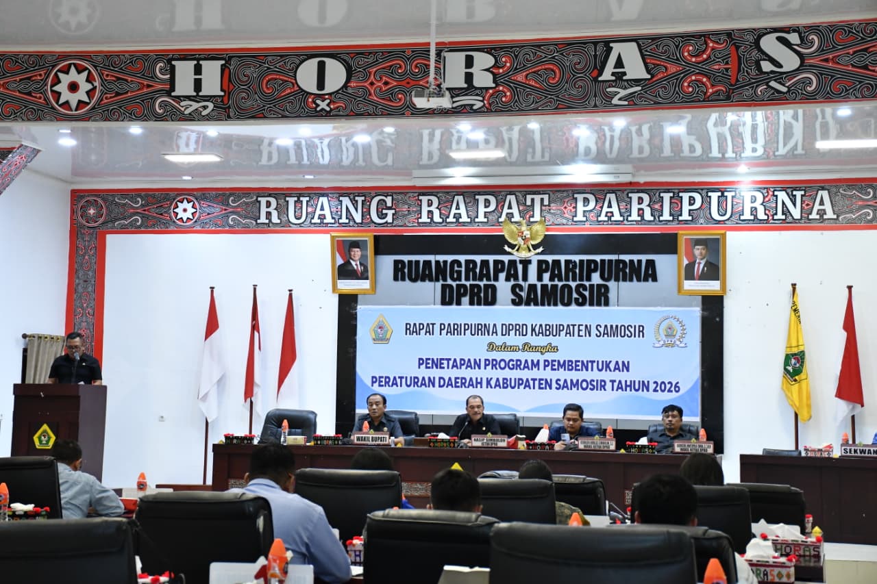 Penetapan tersebut merupakan wujud kepatuhan terhadap Undang-Undang Nomor 12 Tahun 2011 tentang Pembentukan Peraturan Perundang-undangan serta Peraturan Menteri Dalam Negeri Republik Indonesia Nomor 80 Tahun 2015 tentang Pembentukan Produk Hukum Daerah, yang menyatakan bahwa perencanaan pembentukan peraturan daerah harus disusun secara terencana, terpadu, dan sistematis dalam program pembentukan peraturan daerah yang ditetapkan melalui rapat paripurna. Propemperda tersebut akan dibahas dalam tiga masa sidang antara DPRD dan Pemerintah Kabupaten Samosir. Propemperda yang ditetapkan antara lain Ranperda tentang Perusahaan Umum Daerah Aneka Usaha Kabupaten Samosir, Rencana Induk Pengembangan Pertanian, Pengelolaan Sampah, Pengelolaan Air Limbah Domestik Kabupaten, Perlindungan dan Pemberdayaan Petani, Kawasan Tanpa Rokok, Perubahan Peraturan Daerah Kabupaten Samosir Nomor 3 Tahun 2016 tentang Pencalonan, Pemilihan, Pengangkatan, Pelantikan, dan Pemberhentian Kepala Desa, Pungutan bagi Wisatawan untuk Perlindungan Kebudayaan dan Lingkungan, Perubahan Perda Nomor 3 Tahun 2018 tentang Rencana Tata Ruang Wilayah Kabupaten Samosir Tahun 2025–2045, Manajemen Pendidikan, serta Ranperda tentang Penyertaan Modal kepada BUMD Aneka Usaha. Selain itu, juga ditetapkan Ranperda yang bersifat wajib, antara lain Ranperda tentang Pertanggungjawaban Pelaksanaan APBD Tahun Anggaran 2025, Perubahan APBD Tahun 2026, dan APBD Tahun 2027.