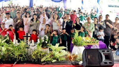 Pematangsiantar | DelikSumut – Perayaan Natal Tahun 2025 Keluarga Besar Polres Pematangsiantar berlangsung khidmat dan kebersamaan bertempat di Gereja GKPS, Jalan Sudirman, Kelurahan Teladan, Kecamatan Siantar Barat, Kota Pematangsiantar, Sabtu (27/12/2025) sore, sekira pukul 16.30 Wib.