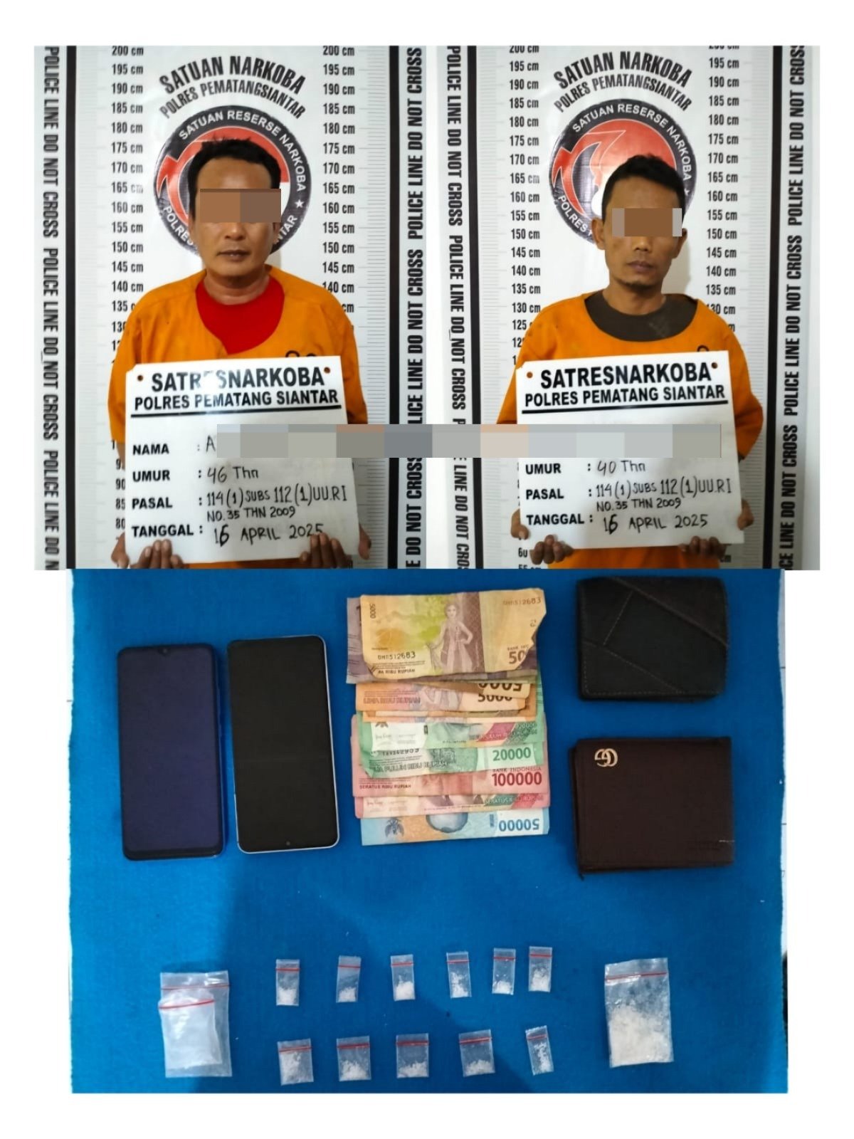 Kapolres Pematangsiantar AKBP Sah Udur T.M. Sitinjak SH. SIK. MH melalui Kasat Resnarkoba AKP Jonni Hasudungan Pardede SH mengatakan, kedua tersangka berinisial A (46) warga Jalan Medan KM.7 Kelurahan Tanjung Tongah, Kecamatan Siantar Martoba, Kota Pematangsiantar dan SD (40) warga Jalan Siak, Kelurahan Martoba, Kecamatan Siantar Utara Kota Pematangsiantar.