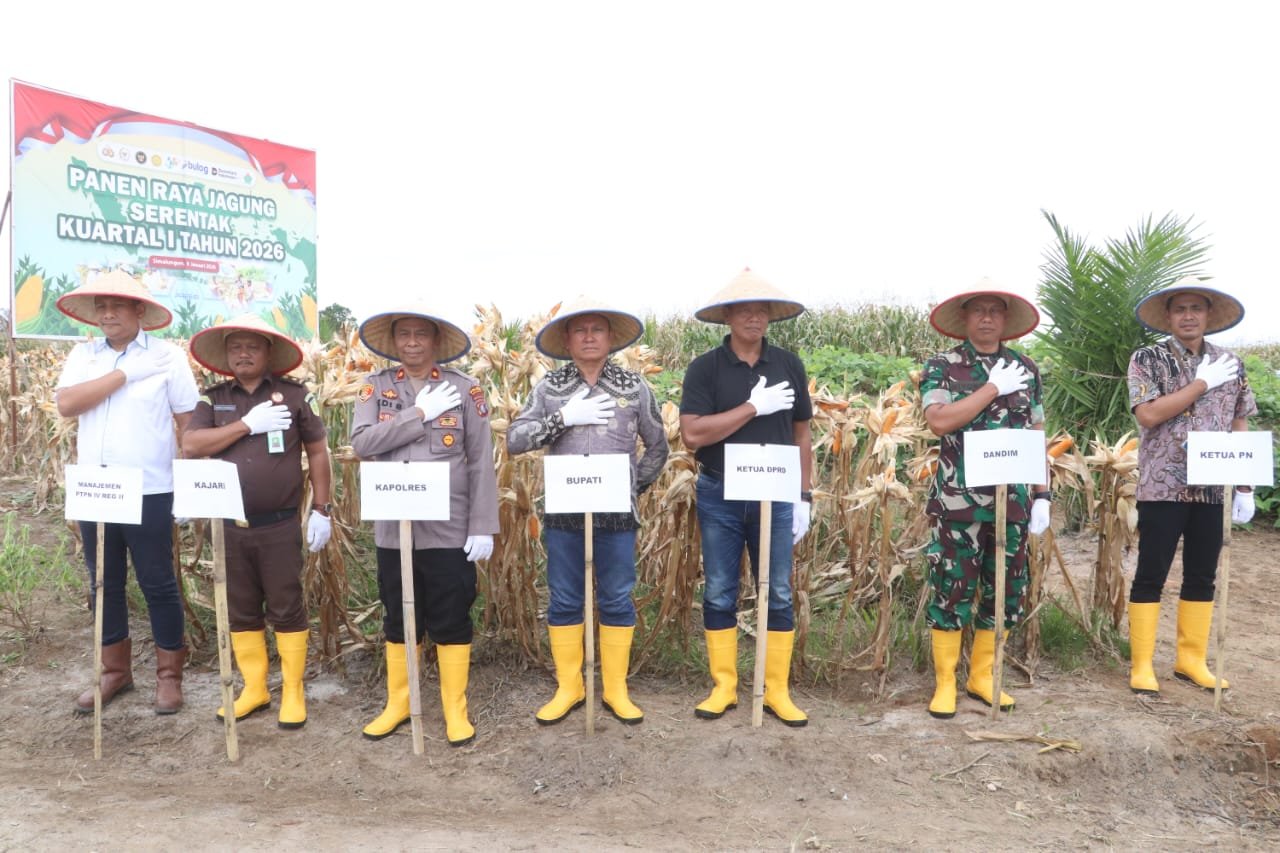 Simalungun | DelikSumut – Moment bersejarah! Kapolri Jenderal Polisi Listyo Sigit Prabowo, M.Si., memimpin langsung secara virtual via Zoom pelaksanaan Panen Raya Jagung Serentak Kuartal I Tahun 2026 di Areal Perkebunan PTPN IV Regional II Kebun Hatonduhan, Nagori Parhundalian Jawa Dipar, Kecamatan Hatonduhan, Kabupaten Simalungun, Kamis, (8/01/2026), pukul 09.30 WIB,Pagi. Dengan total luas 12 hektar, kegiatan ini menunjukkan komitmen Polri dalam mendukung ketahanan pangan nasional dan kesejahteraan petani.