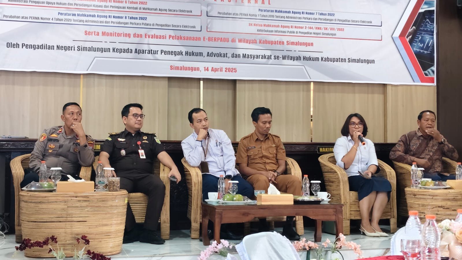Simalungun | DelikSumut – Polres Simalungun turut berpartisipasi dalam kegiatan Sosialisasi Eksternal kepada Aparat Penegak Hukum (APH) dan Monitoring E-Berpadu yang diselenggarakan di Pengadilan Negeri Simalungun, Senin (14/4/2025). Kegiatan ini merupakan bagian dari upaya profesional Polri dalam pengamanan keamanan dan ketertiban masyarakat (Kamtibmas) di wilayah hukum Polres Simalungun.