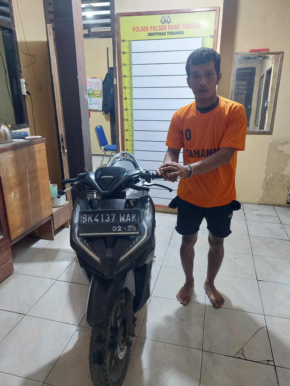 Diinterogasi mengakui perbuatannya telah mencuri sepeda motor tersebut dari wilkum Polseķ Panei Tongah pada bulan September 2024 pada malam hari dari garasi rumah warga. Adanya pengakuan itu pelaku beserta barang bukti diboyong ke Polsek Panei Tongah.