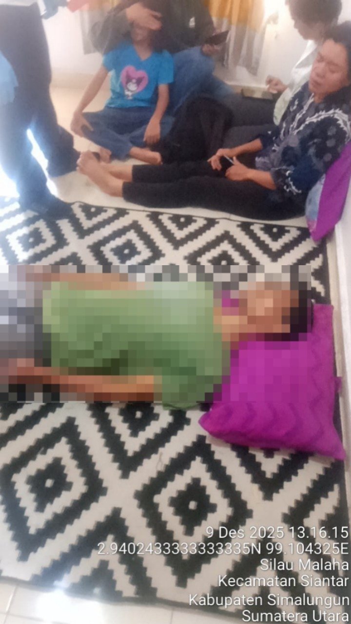 Pematangsiantar | DelikSumut – Personil Polsek Siantar Marihat respon laporan masyarakat dengan melakukan pengecekan temuan mayat gantung diri, RSA (36) di Perumahan Pattimura Residence, jalan Pattimura Ujung, Kelurahan BP Nauli, Kecamatan Siantar Marihat Kota Pematangsiantar, Selasa (9/12/2025) siang sekira pukul 12.00 Wib.