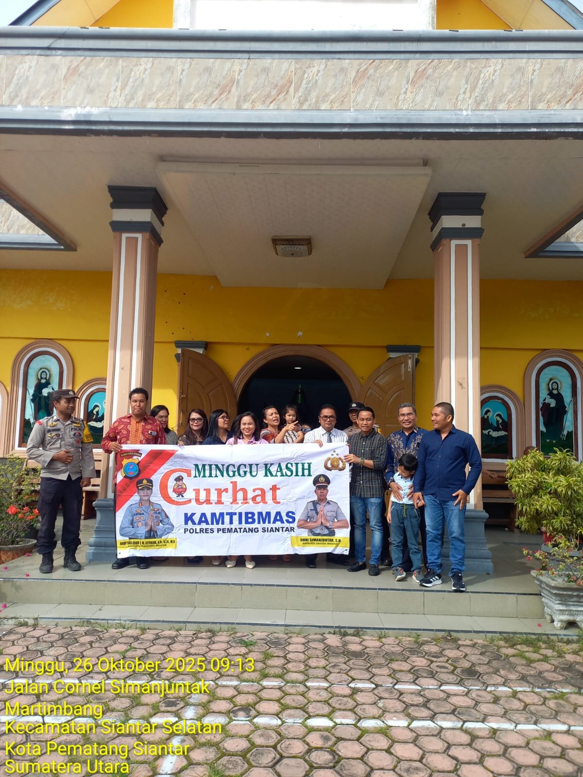 Pematangsiantar | DelikSumut – Polsek Siantar Marihat Polres Pematangsiantar melalui Piket Bhabinkamtibmas menggelar kegiatan Minggu Kasih Curhat Kamtibmas di Gereja HKBP Jalan Cornel Simanjuntak, Kelurahan Naga Huta Timur, Kecamatan Siantar Marimbun, Kota Pematangsiantar.