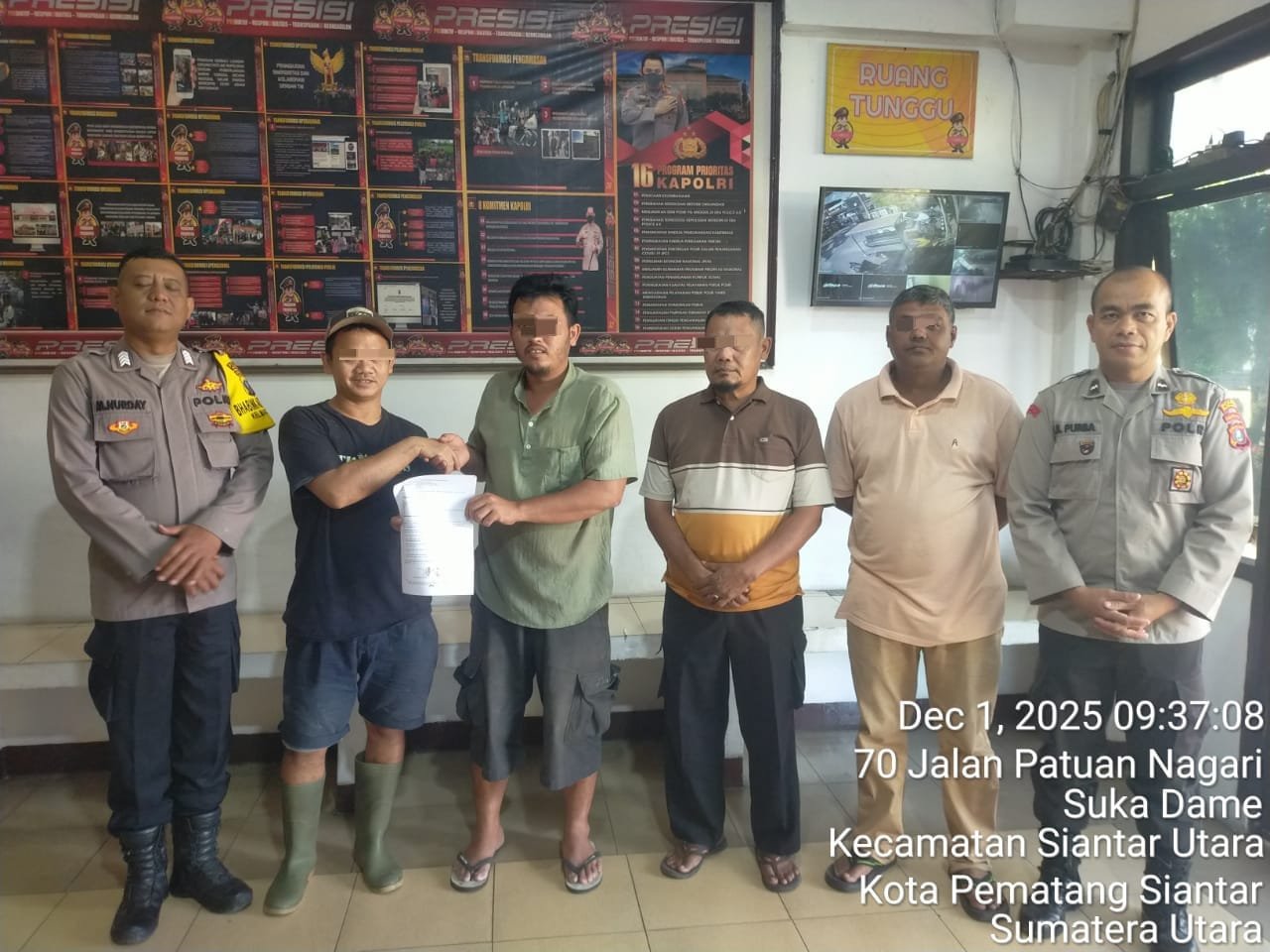Pematangsiantar | DelikSumut – Polsek Siantar Martoba Polres Pematangsiantar melalui personil piket SPKT dan Bhabinkamtibmas Kelurahan Martoba Bripka M. Nurday selesaikan dugaan penganiayaan di Jalan Langkat, Gang Rukun, Kelurahan Martoba, Kecamatan Siantar Utara, Kota Pematangsiantar dengan problem solving, Senin (1/12/2025) pagi sekira pukul 08.10 Wib.