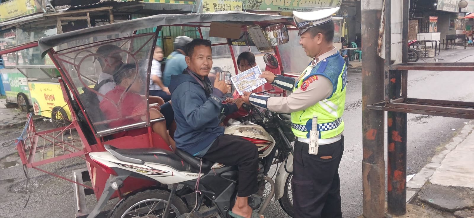 Kemudian memberikan brosur arahan dan edukasi kepada masyarakat dan pengemudi yang berada di seputaran jalan Sutomo simpang jalan Vihara agar tidak menerobos barier yang di letakkan di tengah badan jalan dengan maksud agar tidak menyeberang langsung dengan kendaraannya karena sangat membahayakan dan mengingat arus padat dan kencang di sepanjang jalan Sutomo.