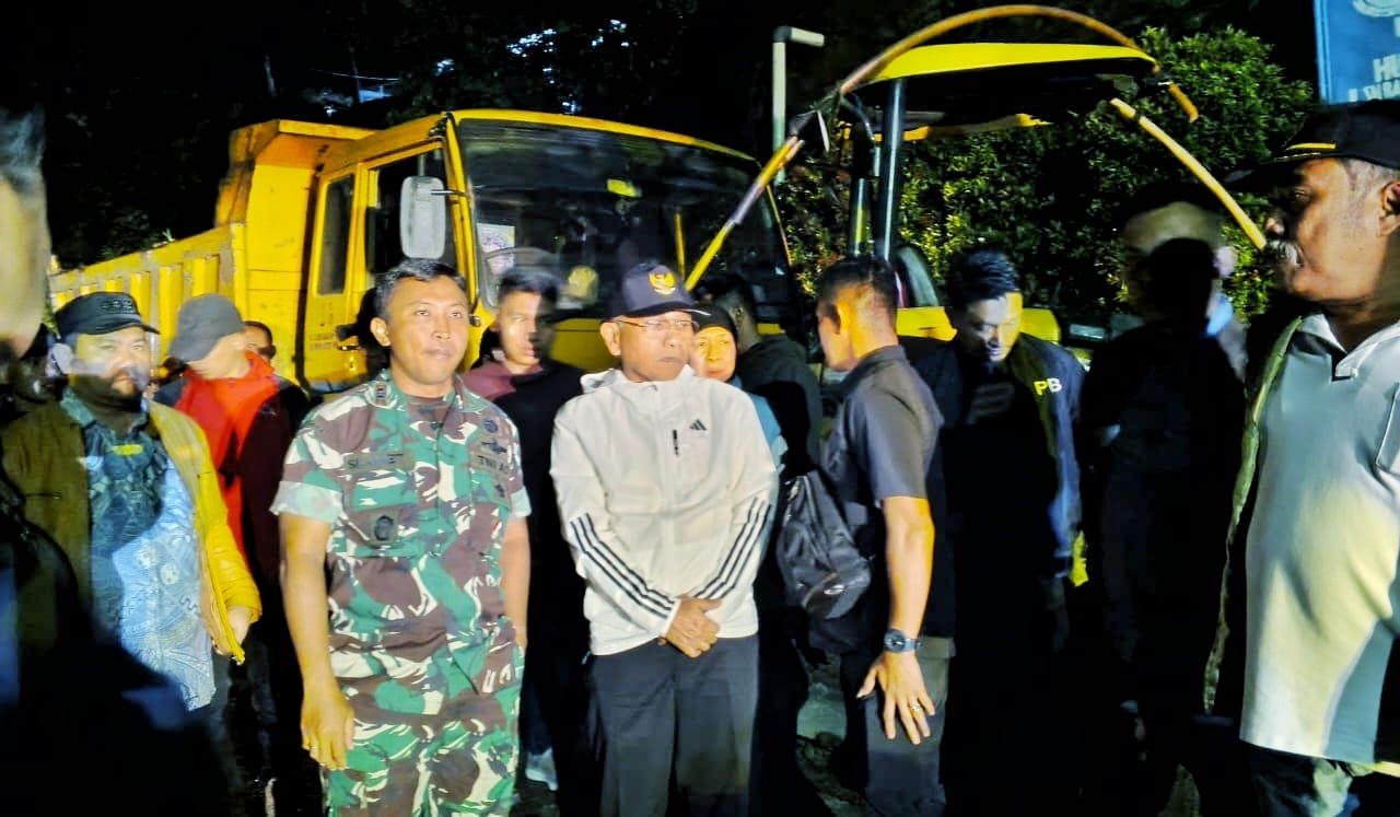 Simalungun | DelikSumut – Bupati Simalungun Anton Achmad Saragih bersama Wakil Bupati Benny Gusman Sinaga dan Ketua TP PKK Ny Darmawati Anton Achmad Saragih menunjukkan kepeduliannya dengan langsung meninjau lokasi longsor di Nagori Sibaganding, Kecamatan Girsang Sipangan Bolon, Simalungun, Sumut, Minggu malam (16/3/2025).